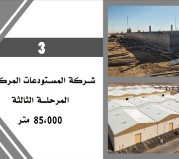 • تركيب الهيكل: يتم تركيب هيكل المستودع باستخدام مواد البناء المختارة.